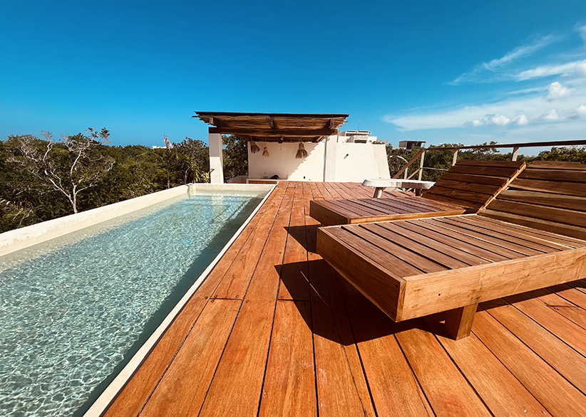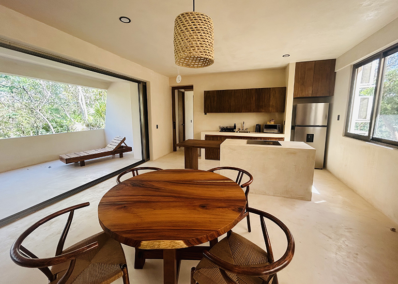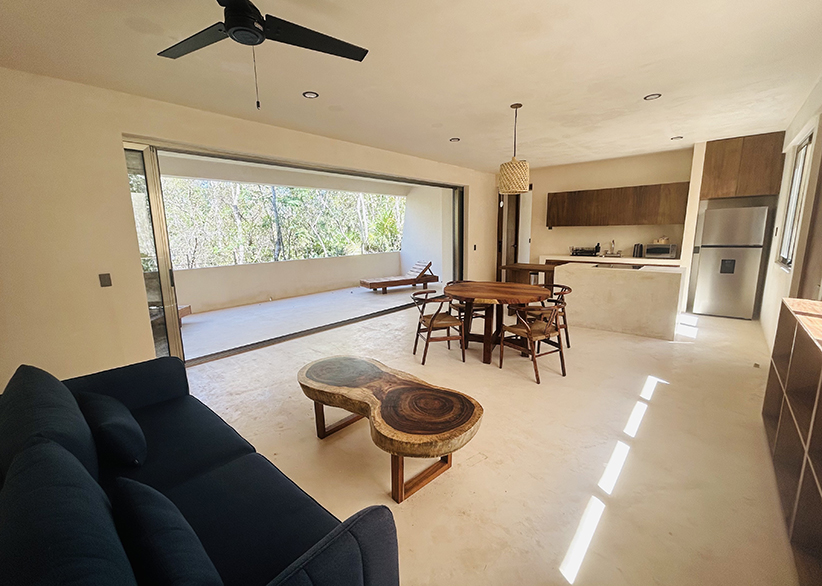 TALUD is an exclusive boutique development of only three apartments, inspired by the architecture of Mayan temples and blending natural materials with contemporary design to harmoniously integrate with the Tulum jungle. The project combines sustainability, aesthetics, and functionality through solar energy, natural ventilation, and eco-friendly water treatment systems.